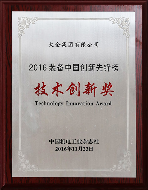 近日,大全集团荣获2016装备中国创新先锋榜“技术创新奖”。