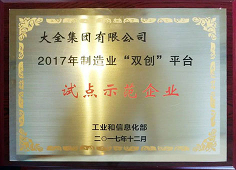 大全集团荣获2017年制造业“双创”平台试点示范企业