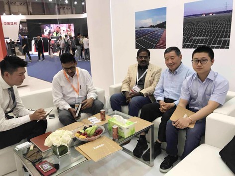 Azure Power 供应链管理总裁Sanjeev先生来访大全展台,大全集团董事长徐广福先生亲自接待,Sanjeev先生表示此前对大全新能源全产业链印象深刻,此次会见加深了彼此互信。Azure Power与南京新能源就Q3/Q4组件采购业务展开具体会谈。