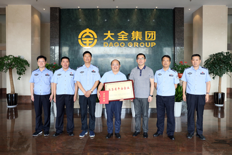 近日,大全集团获2017年度“平安企业”,全省共100家企业获此殊荣。8月24日,镇江市公安局副局长季成宾、内保支队支队长金家银一行在扬中市公安局政委仲纪华等领导陪同下到大全集团进行授牌表彰,集团总裁徐翔、副总裁蔡斌接待。