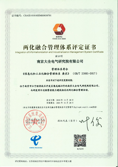 近日,南京研究院顺利通过两化融合管理体系认证,获得由国家工信部授权评定机构颁发的《两化融合管理体系评定证书》。