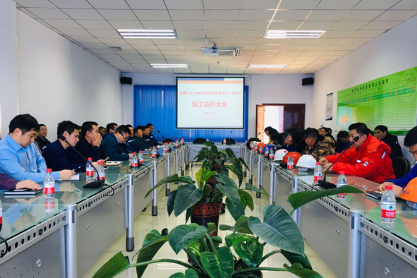 2月25日下午,新疆大全新能源组织召开“15GW光伏组件及配套项目(A阶段)复工动员大会”。全部标段12家施工单位、1家监理单位及公司各部门负责人共计70余人参加会议。