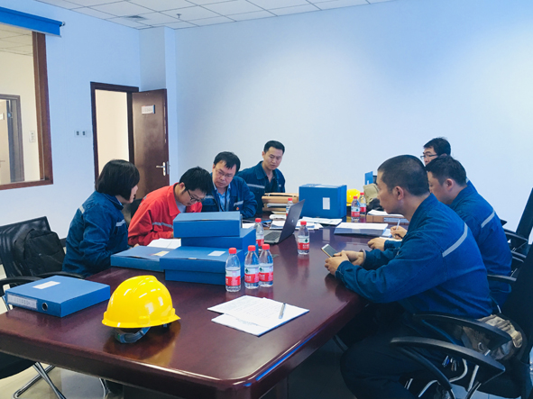 4月24日,全国危险化学品重点县专家指导服务组到新疆大全新能源指导工作。服务组此行旨在帮助公司梳理排查项目总图、消防应急、安全管理、设备、电气仪表等专业的风险隐患,强化公司安全风险分级管控和隐患排查治理双重预防性工作机制。公司总经理及相关车间、部门共计30余人参加此次检查指导。