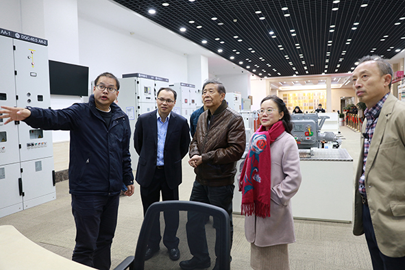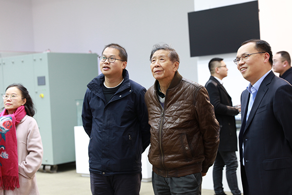 参观过程中,钱清泉院士听取了关于企业概况及电气、新能源、轨道交通领域相关产品的详细介绍,对大全集团取得的成绩给予肯定,同时就轨道交通电气化方向的技术前景进行了交流。