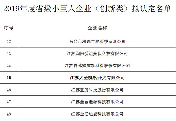 近日,江苏省工业和信息化厅网上公示了2019年度省级专精特新小巨人企业认定名单,大全集团三家公司榜上有名。本次申报工作由集团技术中心和集团总裁办牵头,三家公司积极响应。镇江默勒电器有限公司的低压智慧云柜(MODAQO-M)被评定为“2019年度省级专精特新产品”,镇江西门子母线有限公司被评定为“2019年度省级小巨人企业(制造类)”,江苏大全凯帆开关有限公司被评定为“2019年度省级小巨人企业(创新类)”。