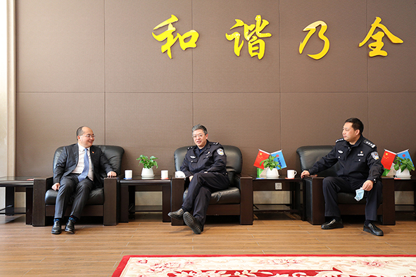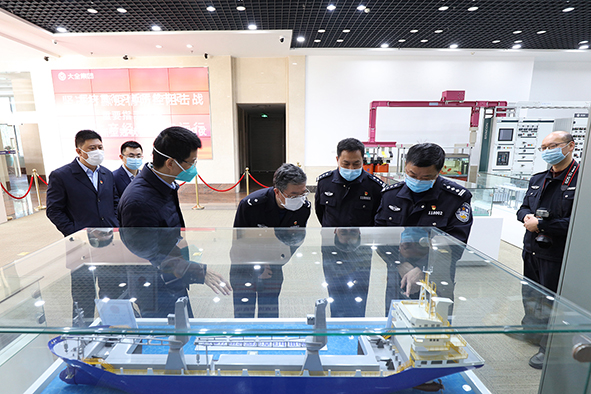 3月18日,镇江市公安局常务副局长梁坚到大全集团调研复工复产期间安全生产及治安管控情况,扬中市副市长、市公安局局长周勇,市公安局政委卞为民陪同,大全集团总裁徐翔、副总裁蔡斌接待。