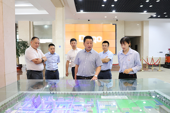 6月23日,湖州长兴分区管委会常务副主任贾惠良、副主任谢勇到访大全集团,参观了集团展厅、镇江默勒和镇江西门子车间,集团总裁徐翔、副总裁施大峰接待一行。