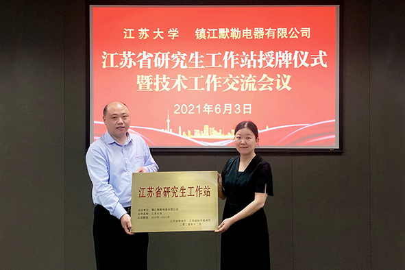 6月3日,镇江默勒电器有限公司-江苏大学共建“江苏省研究生工作站”授牌仪式暨技术工作交流会议在镇江默勒举行。