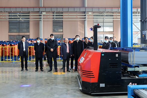 高世文市长一行参观了大全变压器铁芯智能生产车间,赞扬公司在数字化管理、数字化制造方面取得的成就。