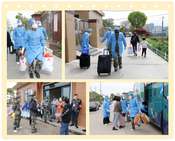 4月14日,他们根据社区的安排,分批次去引导集中隔离人员回家,维护好秩序,帮助搬运行李并护人员送到户。当天,他们一共完成了15户“欢迎回家”的接送任务。