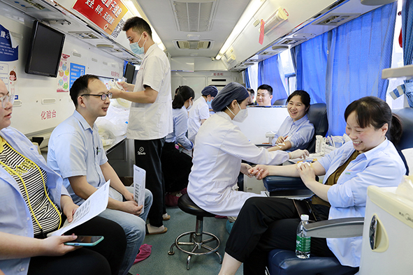 活动现场,员工们积极配合血站工作人员,认真进行填表、体检、化验、采血。大家互相交流献血经历,分享献血常识,到处洋溢着“献血光荣、传递爱心”的浓厚氛围。同时,血站的护士也向员工们介绍了献血有关的法律法规,宣传无偿献血的意义。