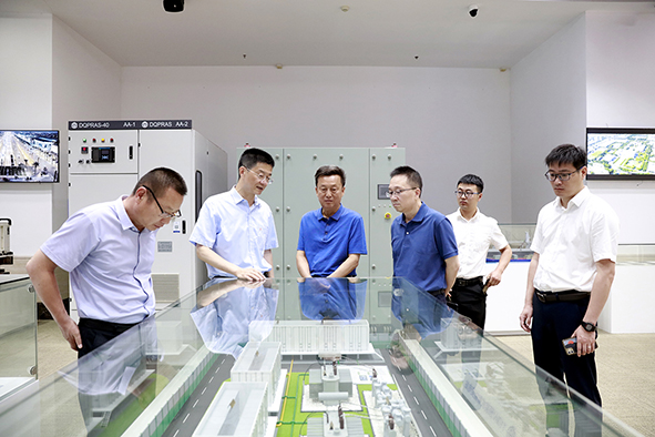 新疆考察团领导一行在省级智能制造示范工厂——镇江默勒电器有限公司实地察看了企业智能制造、数字管理、生产运营情况;在集团展厅观看了企业宣传片,听取了关于大全集团三大产业、产业布局、发展规划、产品研发、科技创新等介绍。