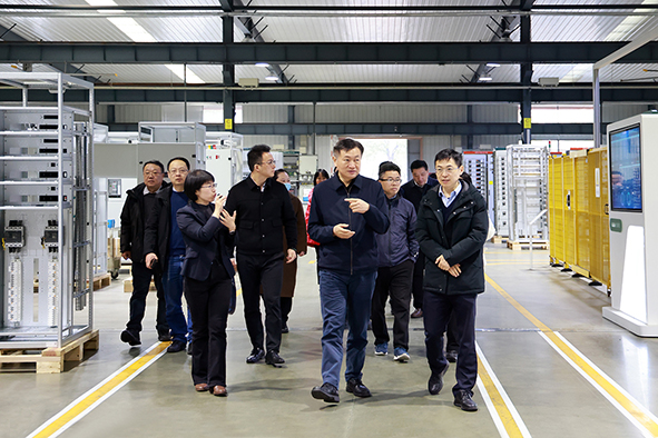 在集团展厅,执行总裁葛飞向王万军副局长一行介绍了企业发展规划、产业布局、技术研发、科技创新、数字化管理、绿色制造等情况,汇报了大全集团2023年度各项经济指标完成情况。在镇江默勒智能制造示范工厂,王万军副局长一行看设备、问技术,听取工作人员关于企业实施“智改数转”后的生产运营情况汇报,并观摩了企业“数字孪生”可视化运营管理系统。