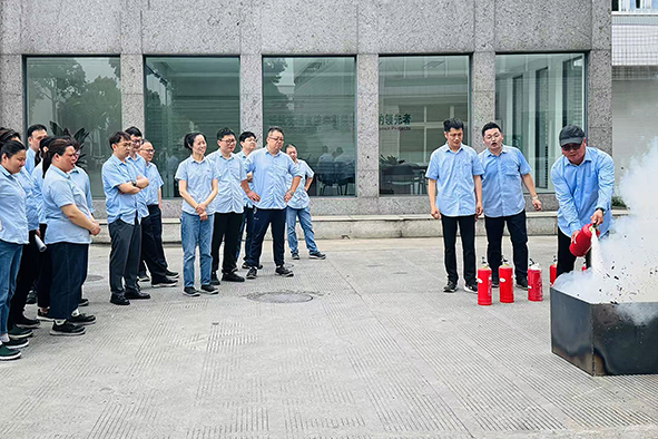 消防应急演练:在厂区集中疏散点,安全专员先演示讲解干粉灭火器的正确使用方法,接着员工分组进行模拟火情扑救。演练过程紧张有序,参练人员熟练掌握了灭火器材操作及疏散逃生技巧,达到了预期效果。