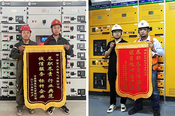 近日,南京大全电气凭借卓越的产品质量与专业服务,相继获得甘肃耀望化工有限公司和国家电网紧水滩水冷式绿色数据中心项目部的锦旗表彰。