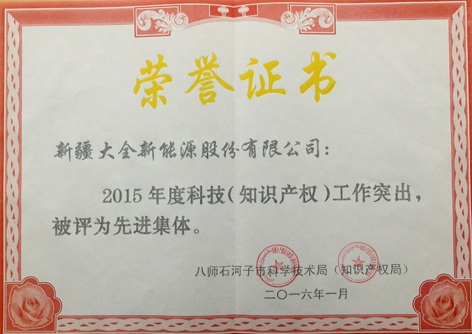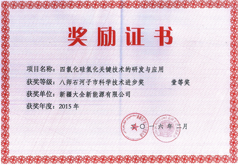 3月21日下午,新疆石河子市组织召开了“市科技奖励大会暨市科技工作会议和市科协五届八次全委会”。会上,新疆大全新能源被评为“2015年度科技(知识产权)工作先进集体”受到表彰,同时公司选报的一项科技攻关成果荣获“市科技进步一等奖”。