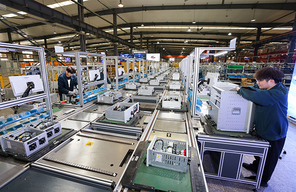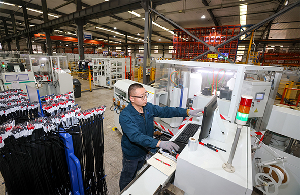 近日,位于江宁经济开发区的南京大全电气有限公司生产车间内。生产设备全负荷运转,工人们干劲十足,生产线上呈现出一片红红火火的景象。