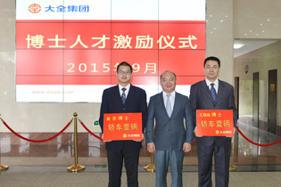 为完善博士人才引进机制,加大激励力度,近期大全集团制定了博士人才引进特殊待遇。9月29日,集团举行博士人才激励仪式,总裁徐翔给2位博士研究生颁奖,奖励价值二十万轿车壹辆。