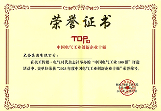 11月23日,第19届中国电气工业发展高峰论坛暨“第23届中国电气工业100强研究”发布会在北京举办。大全集团荣登“第23届中国电气工业100强”榜首,蝉联“2023年度中国电气工业领军企业10强”,获评“2023年度中国电气工业创新企业10强”。